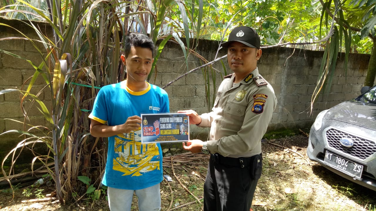 Bhabinkamtibmas Desa Karatungan Kec. Limpasu Brigadir Eka Mayudha Putra melaksanakan giat sosialisasi pungutan liar/pungli kepada warga desa binaannya.